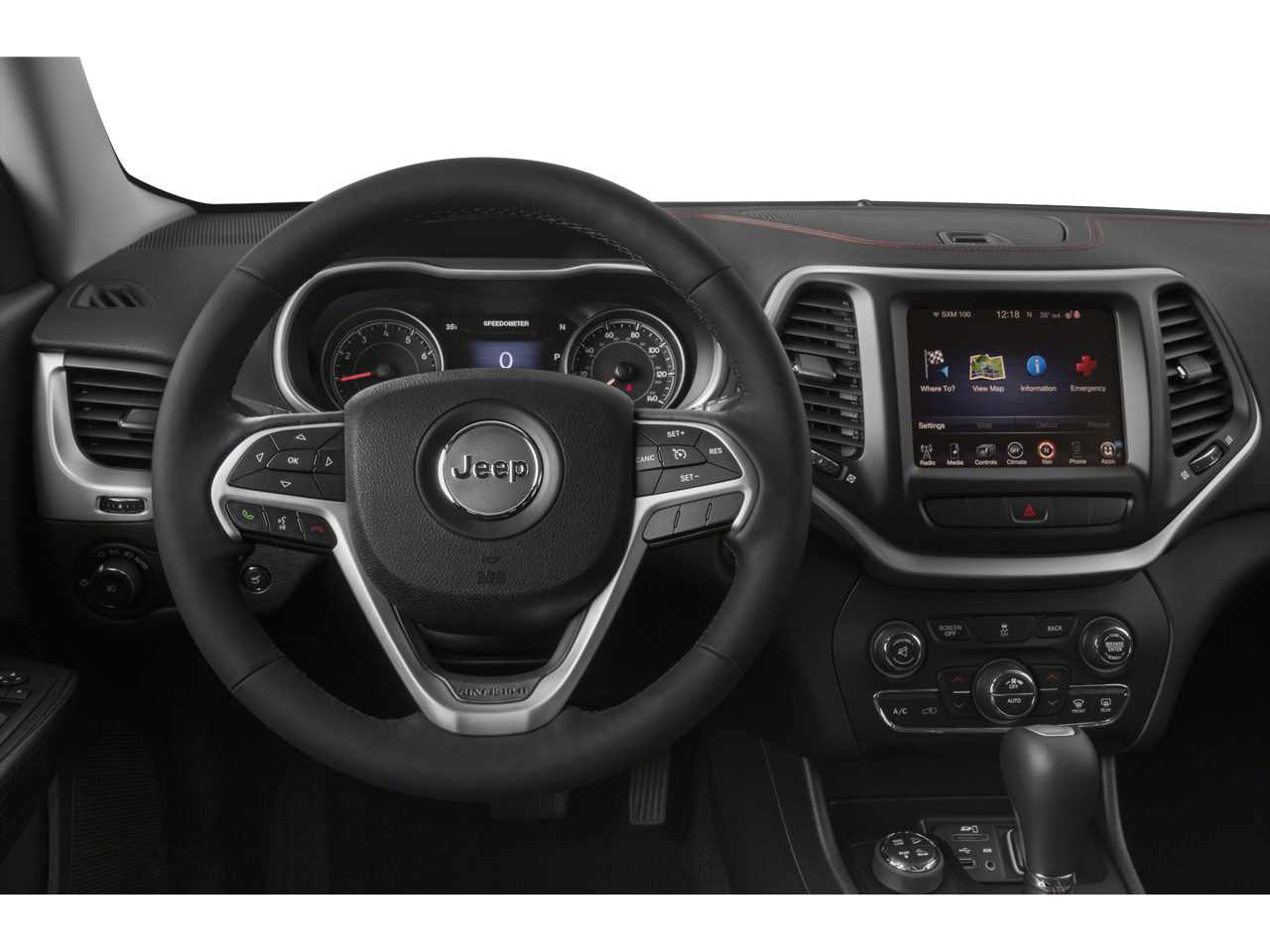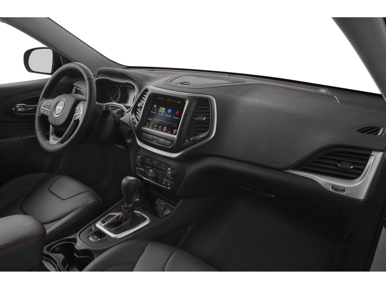 Below is all the standard equipment Quick Order Package 27E, 17 x 7.5 Aluminum Wheels, GPS Navigation, 1 Year Trial (Registration Required), 4-Wheel Disc Brakes, 5-Year SiriusXM Traffic Service, 5-Year SiriusXM Travel Link Service, 6 Speakers, 8.4 Touch Screen Display, ABS brakes, Accent Color Exterior Mirrors, Air Conditioning, Alloy wheels, AM/FM radio: SiriusXM, Anti-whiplash front head restraints, Auxiliary Transmission Oil Cooler, Brake assist, Cloth/Leather/Vinyl Bucket Seats, Compass, Delay-off headlights, Driver door bin, Driver vanity mirror, Dual front impact airbags, Dual front side impact airbags, Electronic Stability Control, Emergency communication system, Engine Oil Cooler, Four wheel independent suspension, Front anti-roll bar, Front Bucket Seats, Front Center Armrest, Front fog lights, Front reading lights, Fully automatic headlights, GPS Antenna Input, Harman Radio Manufacturer, HD Radio, Illuminated entry, Integrated Voice Command w/Bluetooth®, Knee airbag, Leather Shift Knob, Low tire pressure warning, No Satellite Coverage w/AK/HI, Occupant sensing airbag, Off Road Suspension, Outside temperature display, Overhead airbag, Overhead console, Panic alarm, ParkView Rear Back-Up Camera, Passenger door bin, Passenger vanity mirror, Power door mirrors, Power steering, Power windows, Radio data system, Radio: Uconnect 8.4A AM/FM/SXM/BT, Radio: Uconnect 8.4AN AM/FM/SXM/HD/BT/NAV, Rear anti-roll bar, Rear reading lights, Rear seat center armrest, Rear side impact airbag, Rear window defroster, Rear window wiper, Remote keyless entry, Roof rack: rails only, SIRIUSXM Satellite Radio, SIRIUSXM Traffic, SiriusXM Travel Link, Speed control, Speed-sensing steering, Split folding rear seat, Spoiler, Steering wheel mounted audio controls, Tachometer, Telescoping steering wheel, Tilt steering wheel, Traction control, Trip computer, Uconnect Access, Variably intermittent wipers, and Voltmeter.