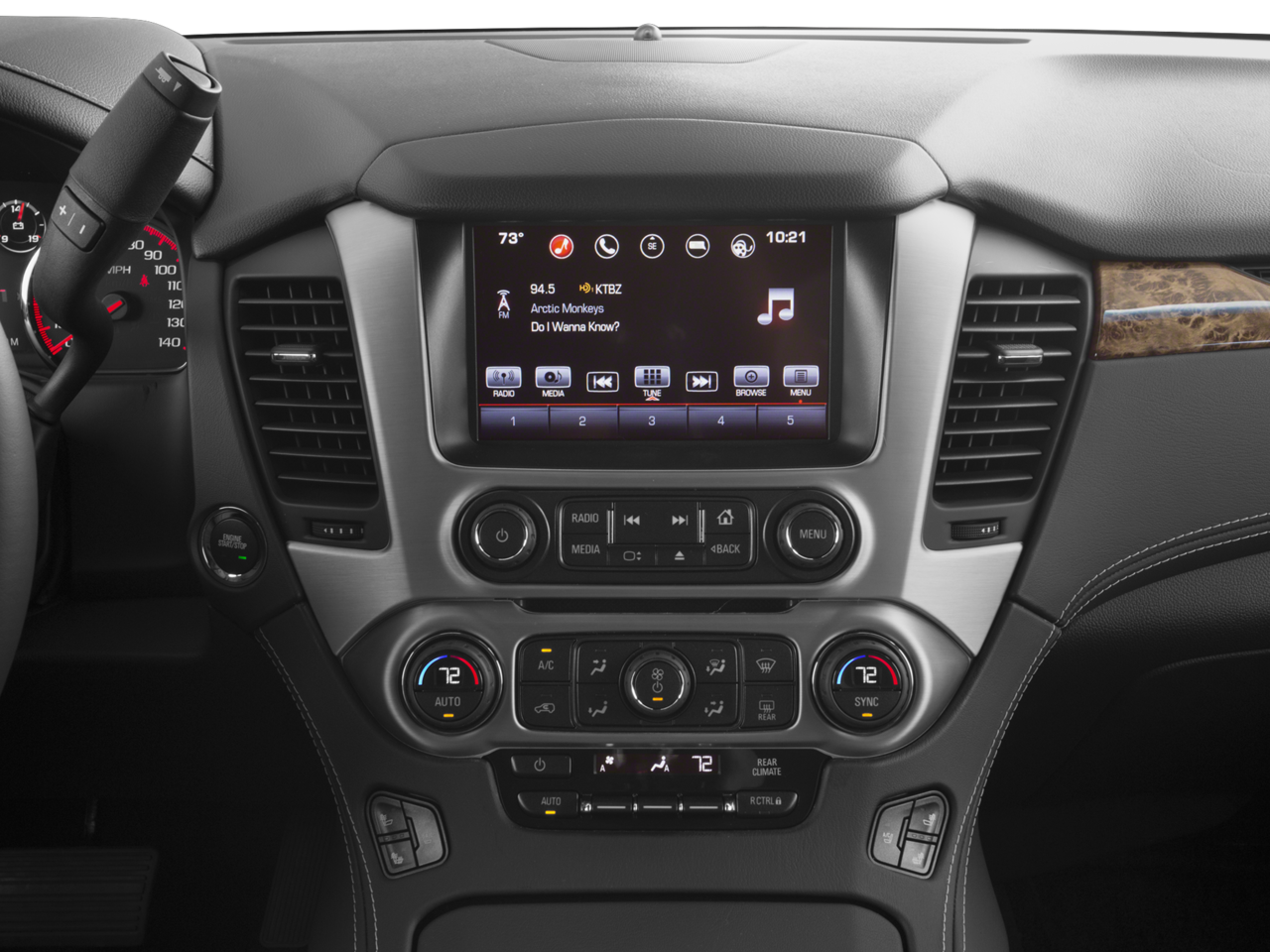 Below is all the standard equipment Enhanced Driver Alert Package (Forward Collision Alert Sensor Indicator, Intellibeam Automatic High Beam On/Off Headlamps, Lane Keep Assist, and Safety Alert Driver Seat), Magnetic Ride Control Suspension Package, Memory Package, Open Road Package (Power Tilt-Sliding Sunroof w/Express-Open/Close and Rear Seat Blu-Ray/DVD Entertainment System), Preferred Equipment Group 5SA (17 Disc/Disc VAC Power Brakes, 5 Auxiliary 12-volt Power Outlets, Black Assist Steps w/Chrome Strip, Hands Free Power Liftgate, Heated Leather-Wrapped Steering Wheel, Inside Rear-View Auto-Dimming Mirror, Integrated Trailer Brake Controller, OnStar Basic Plan For 5 Years, OnStar w/4G LTE, Passive Entry System, Power Release Second Row Bucket Seats, Power Tilt & Telescopic Steering Column, Power-Adjustable Pedals For Accelerator & Brake, Push Button Keyless Start, Rear Cross-Traffic Alert, Remote Keyless Entry, Side Blind Zone Alert w/Lane Change Alert, Universal Home Remote, and Wireless Charging), License Plate Front Mounting Package, 4WD, Wheels: 22 x 8.5 Aluminum w/Chrome Inserts, 10 Speakers, 3.23 Axle Ratio, 3rd row seats: split-bench, 4-Wheel Disc Brakes, ABS brakes, Adaptive suspension, Adjustable pedals, Air Conditioning, Alloy wheels, AM/FM radio: SiriusXM, AppLink/Apple CarPlay and Android Auto, Auto High-beam Headlights, Auto-dimming door mirrors, Auto-dimming Rear-View mirror, Automatic temperature control, Bodyside moldings, Bose Centerpoint Premium 10-Speaker Surround Sound, Brake assist, Bumpers: body-color, CD Player, CD player, Compass, Delay-off headlights, Driver door bin, Driver vanity mirror, Dual front impact airbags, Dual front side impact airbags, Electronic Stability Control, Emergency communication system: OnStar Guidance, Exterior Parking Camera Rear, Front anti-roll bar, Front Bucket Seats, Front Center Armrest, Front dual zone A/C, Front fog lights, Front reading lights, Front wheel independent suspension, Full-Feature Reclining Bucket Seats, Fully automatic headlights, Garage door transmitter, Genuine wood console insert, Genuine wood dashboard insert, Genuine wood door panel insert, Head-Up Display, Heated & Cooled Driver & Front Passenger Seats, Heated door mirrors, Heated front seats, Heated rear seats, Heated steering wheel, High-Intensity Discharge Headlights, Illuminated entry, Leather Shift Knob, Low tire pressure warning, Memory seat, Navigation System, Occupant sensing airbag, Outside temperature display, Overhead airbag, Overhead console, Panic alarm, Passenger door bin, Passenger vanity mirror, Pedal memory, Perforated Leather-Appointed Seat Trim, Power door mirrors, Power driver seat, Power Liftgate, Power passenger seat, Power steering, Power windows, Premium audio system: IntelliLink, Radio: AM/FM w/Navigation, Rain sensing wipers, Rear air conditioning, Rear anti-roll bar, Rear reading lights, Rear wind