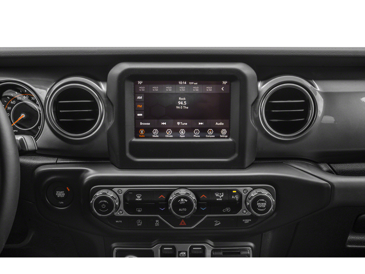 Below is all the standard equipment 8.4 Radio & Premium Audio Group (1-Year SiriusXM Guardian Trial, 4G LTE Wi-Fi Hot Spot, 5-Year SiriusXM Traffic Service, 5-Year SiriusXM Travel Link Service, 8.4 Touchscreen Display, Alpine Premium Audio System, Auto-Dimming Rear-View Mirror, Emergency/Assistance Call, For Details, Visit DriveUconnect.com, GPS Navigation, HD Radio, Radio: Uconnect 4C Nav w/8.4 Display, SiriusXM Traffic Plus, and SiriusXM Travel Link), Cold Weather Group (Heated Front Seats and Heated Steering Wheel), LED Lighting Group (Daytime Running Lamps LED Accents, Front LED Fog Lamps, LED Reflector Headlamps, and LED Taillamps), Quick Order Package 22R, Safety Group (Blind Spot & Cross Path Detection and ParkSense Rear Park Assist System), 4-Wheel Disc Brakes, 4.10 Rear Axle Ratio, 8 Speakers, ABS brakes, Air Conditioning, Alloy wheels, AM/FM radio: SiriusXM, Apple CarPlay/Android Auto, Automatic temperature control, Aux Battery, BF Goodrich Brand Tires, Brake assist, Compass, Delay-off headlights, Driver door bin, Driver vanity mirror, Dual front impact airbags, Dual front side impact airbags, Electronic Stability Control, Front anti-roll bar, Front Bucket Seats, Front Center Armrest w/Storage, Front dual zone A/C, Front fog lights, Front reading lights, Fully automatic headlights, Garage door transmitter, Heated door mirrors, Illuminated entry, Integrated roll-over protection, Leather steering wheel, Low tire pressure warning, MOPAR All-Weather Floor Mats (DISC), Non-Lock Fuel Cap w/o Discriminator, Occupant sensing airbag, Outside temperature display, Panic alarm, ParkView Rear Back-Up Camera, Passenger door bin, Passenger vanity mirror, Performance Suspension, Power door mirrors, Power steering, Power Top Quarter Window Storage Bag, Power windows, Premium Cloth Low-Back Bucket Seats, Radio data system, Radio: Uconnect 4 w/7 Display, Rear anti-roll bar, Rear reading lights, Rear Window Defroster, Rear Window Wiper/Washer, Remote keyless entry, Remote Proximity Keyless Entry, Remote Start System, Removable Rear Quarter Windows, Security system, Sky 1-Touch Power Top, Speed control, Split folding rear seat, Steering wheel mounted audio controls, Stop-Start Dual Battery System, Tachometer, Telescoping steering wheel, Tilt steering wheel, Traction control, Trip computer, Variably intermittent wipers, Voltmeter, Wheels: 17 x 7.5 Black w/Machined Lip, and Wheels: 17 x 7.5 Machined w/Black PocketS.
