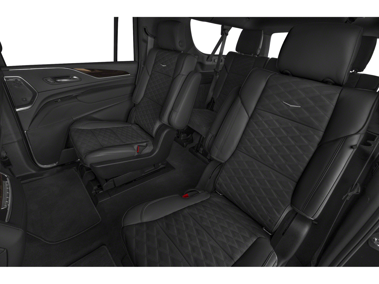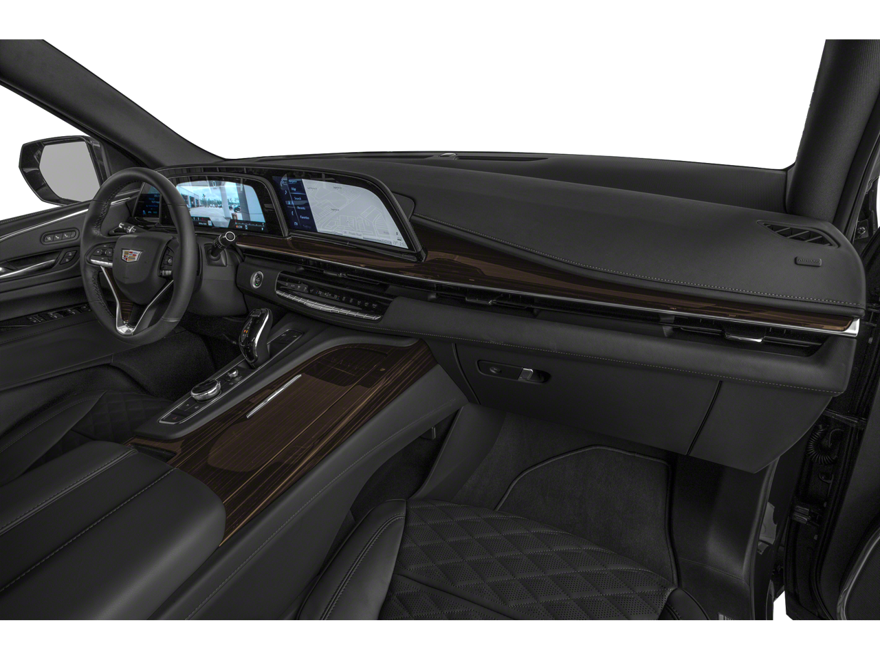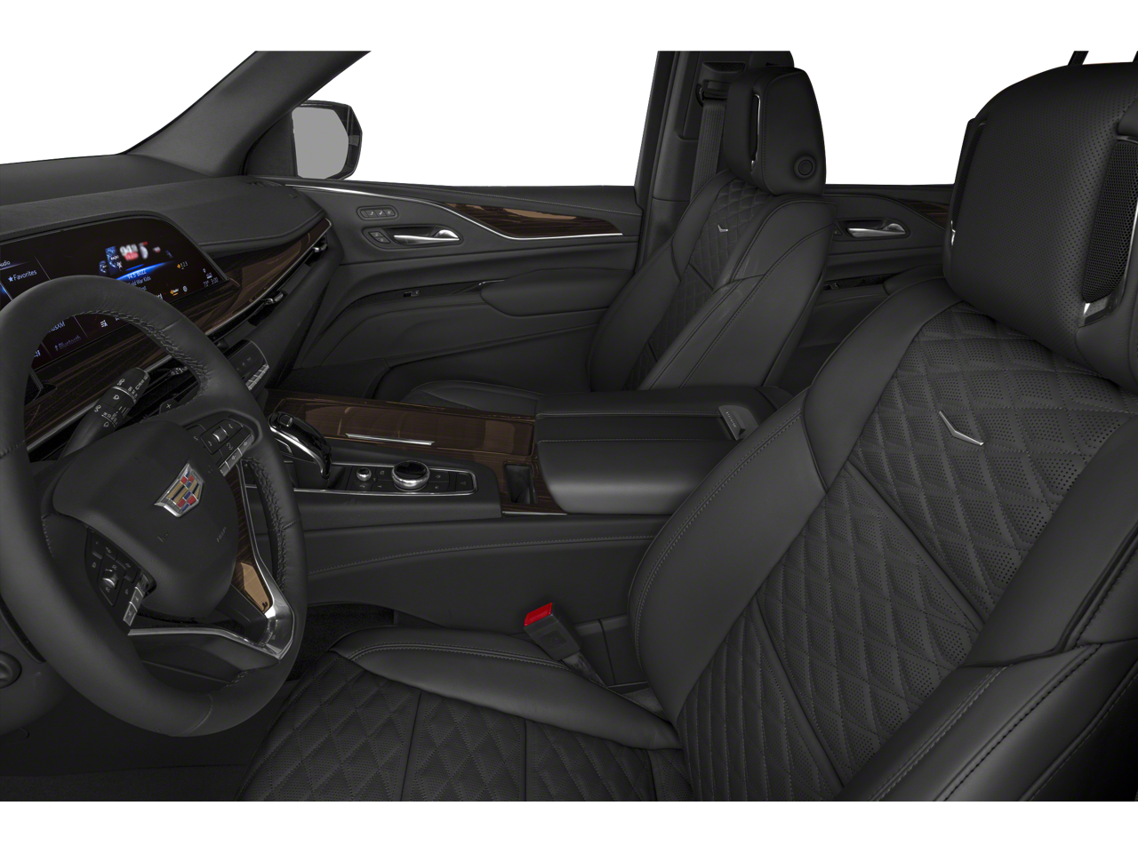 Below is all the standard equipment Preferred Equipment Group 1SB (Air Ionizer, AKG Studio 19-Speaker Audio System, Automatic Emergency Braking, Door Lock & Latch Shields, Electronic Cruise Control w/Set & Resume Speed, Enhanced Automatic Parking Assist, Glass Breakage Sensor, Lane Change Alert w/Side Blind Zone Alert, Lane Keep Assist w/Lane Departure Warning, Mechanical Limited-Slip Differential, Power Panoramic Tilt-Sliding Sunroof, Rear Camera Mirror, Rear Camera Mirror Washer, Rear Cross Traffic Alert, Reconfigurable Full-Color Head-Up Display, Running Board Assist Steps, Theft-Deterrent Alarm System, Vehicle Inclination Sensor, and Vehicle Interior Movement Sensor), Radiant Package (LPO) (Bright Sport Mesh Grille (LPO), Monochrome Cadillac Emblems (LPO), Puddle Lamps w/Cadillac Crest (LPO), Wheels: 22 12-Spoke Chrome Alloy (LPO), and Wheels: 22 Interim (LPO)), 4WD, 16.9 Diagonal OLED Infotainment Screen, 19 Speakers, 2-Presets Memory For Driver Seat Adjuster, 3.23 Axle Ratio, 3rd row seats: split-bench, 4-Way Power Driver Lumbar Seat Adjuster, 4-Way Power Front Passenger Lumbar Seat Adjuster, 4-Wheel Disc Brakes, 8-Way Power Driver Seat Adjuster, 8-Way Power Front Passenger Seat Adjuster, ABS brakes, Air Conditioning, Alloy wheels, AM/FM radio: SiriusXM with 360L, Apple CarPlay/Android Auto, Audio memory, Auto High-beam Headlights, Auto tilt-away steering wheel, Auto-dimming door mirrors, Automatic temperature control, Brake assist, Bumpers: body-color, Compass, Delay-off headlights, Driver door bin, Driver vanity mirror, Dual front impact airbags, Dual front side impact airbags, Electronic Stability Control, Emergency communication system: OnStar and Cadillac connected services capable, Four wheel independent suspension, Front anti-roll bar, Front Bucket Seats, Front Center Armrest w/Storage, Front dual zone A/C, Front reading lights, Fully automatic headlights, Garage door transmitter, HD Radio, Heads-Up Display, Heated & Ventilated Driver & Front Passenger Seats, Heated door mirrors, Heated Driver & Front Passenger Seats, Heated front seats, Heated rear seats, Heated steering wheel, Illuminated entry, Leather Seating Surfaces w/Mini-Chevron Perf Inserts, Leather steering wheel, Low tire pressure warning, Memory seat, Navigation System, Occupant sensing airbag, Outside temperature display, Overhead airbag, Overhead console, Panic alarm, Passenger door bin, Passenger vanity mirror, Power door mirrors, Power driver seat, Power Liftgate, Power moonroof, Power passenger seat, Power steering, Power windows, Premium Smooth Ride Suspension, Radio data system, Radio: AM/FM/SiriusXM w/Navigation, Rain sensing wipers, Rear air conditioning, Rear anti-roll bar, Rear reading lights, Rear Seat Entertainment System, Rear window defroster, Rear window wiper, Remote keyless entry, Roof rack: rails only, Security system,