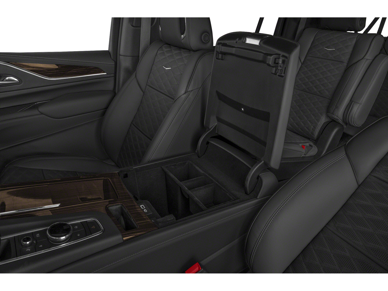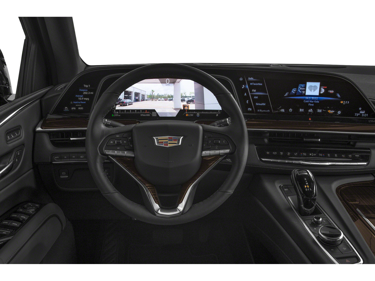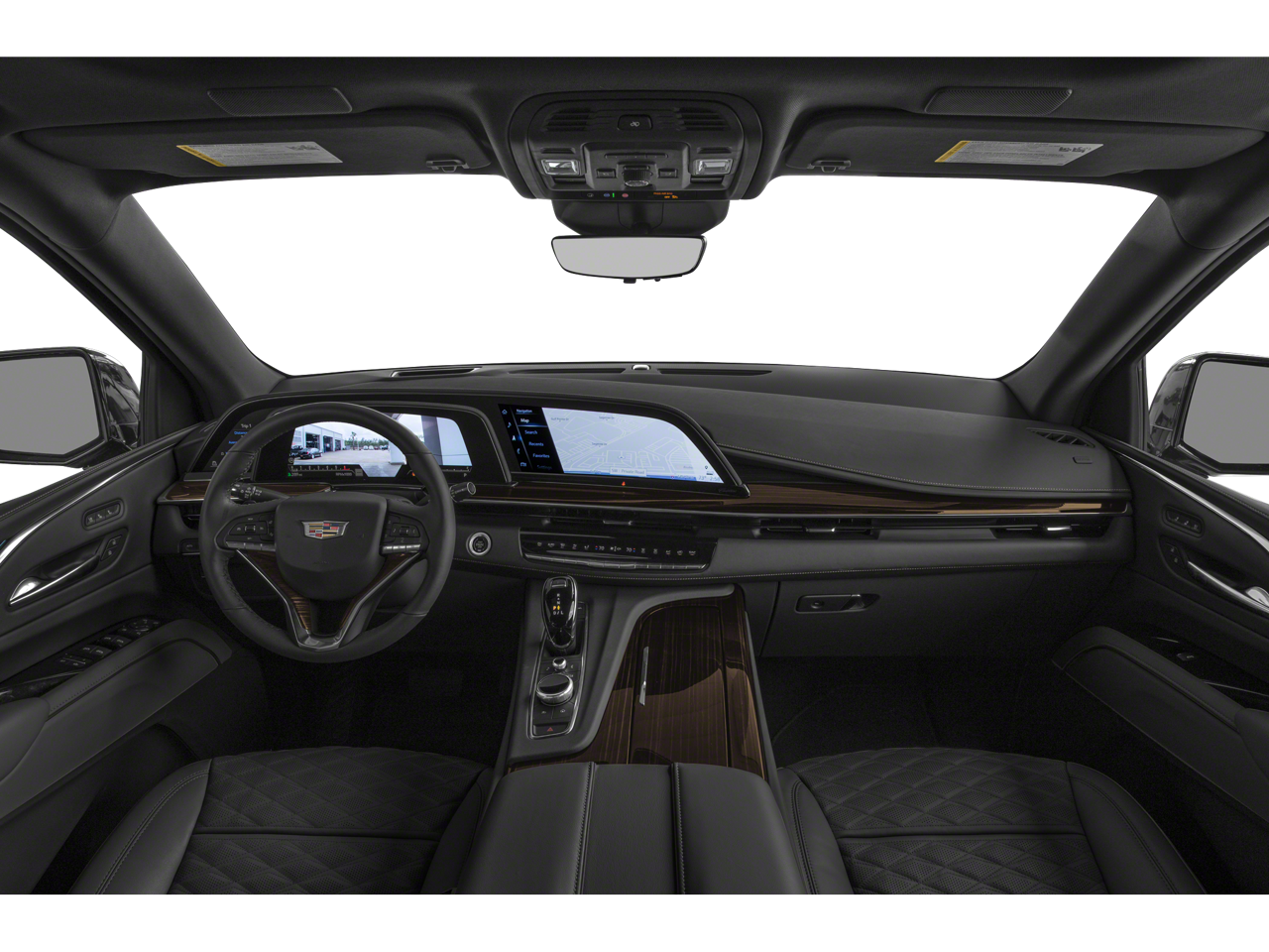 Below is all the standard equipment Preferred Equipment Group 1SB (Air Ionizer, AKG Studio 19-Speaker Audio System, Automatic Emergency Braking, Door Lock & Latch Shields, Electronic Cruise Control w/Set & Resume Speed, Enhanced Automatic Parking Assist, Glass Breakage Sensor, Lane Change Alert w/Side Blind Zone Alert, Lane Keep Assist w/Lane Departure Warning, Mechanical Limited-Slip Differential, Power Panoramic Tilt-Sliding Sunroof, Rear Camera Mirror, Rear Camera Mirror Washer, Rear Cross Traffic Alert, Reconfigurable Full-Color Head-Up Display, Running Board Assist Steps, Theft-Deterrent Alarm System, Vehicle Inclination Sensor, and Vehicle Interior Movement Sensor), Radiant Package (LPO) (Bright Sport Mesh Grille (LPO), Monochrome Cadillac Emblems (LPO), Puddle Lamps w/Cadillac Crest (LPO), Wheels: 22 12-Spoke Chrome Alloy (LPO), and Wheels: 22 Interim (LPO)), 4WD, 16.9 Diagonal OLED Infotainment Screen, 19 Speakers, 2-Presets Memory For Driver Seat Adjuster, 3.23 Axle Ratio, 3rd row seats: split-bench, 4-Way Power Driver Lumbar Seat Adjuster, 4-Way Power Front Passenger Lumbar Seat Adjuster, 4-Wheel Disc Brakes, 8-Way Power Driver Seat Adjuster, 8-Way Power Front Passenger Seat Adjuster, ABS brakes, Air Conditioning, Alloy wheels, AM/FM radio: SiriusXM with 360L, Apple CarPlay/Android Auto, Audio memory, Auto High-beam Headlights, Auto tilt-away steering wheel, Auto-dimming door mirrors, Automatic temperature control, Brake assist, Bumpers: body-color, Compass, Delay-off headlights, Driver door bin, Driver vanity mirror, Dual front impact airbags, Dual front side impact airbags, Electronic Stability Control, Emergency communication system: OnStar and Cadillac connected services capable, Four wheel independent suspension, Front anti-roll bar, Front Bucket Seats, Front Center Armrest w/Storage, Front dual zone A/C, Front reading lights, Fully automatic headlights, Garage door transmitter, HD Radio, Heads-Up Display, Heated & Ventilated Driver & Front Passenger Seats, Heated door mirrors, Heated Driver & Front Passenger Seats, Heated front seats, Heated rear seats, Heated steering wheel, Illuminated entry, Leather Seating Surfaces w/Mini-Chevron Perf Inserts, Leather steering wheel, Low tire pressure warning, Memory seat, Navigation System, Occupant sensing airbag, Outside temperature display, Overhead airbag, Overhead console, Panic alarm, Passenger door bin, Passenger vanity mirror, Power door mirrors, Power driver seat, Power Liftgate, Power moonroof, Power passenger seat, Power steering, Power windows, Premium Smooth Ride Suspension, Radio data system, Radio: AM/FM/SiriusXM w/Navigation, Rain sensing wipers, Rear air conditioning, Rear anti-roll bar, Rear reading lights, Rear Seat Entertainment System, Rear window defroster, Rear window wiper, Remote keyless entry, Roof rack: rails only, Security system,