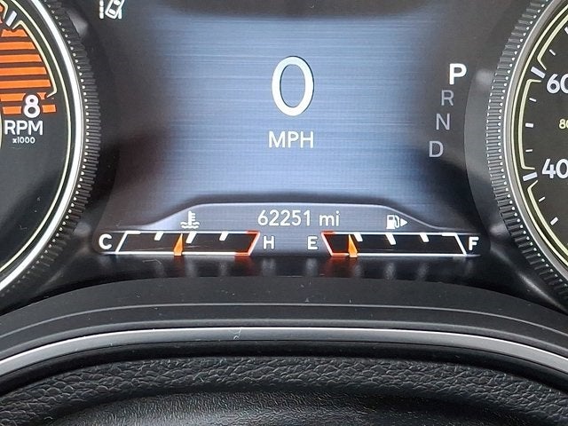 Below is all the standard equipment Comfort/Convenience Group (115V Auxiliary Power Outlet, Auto-Dimming Rear-View Mirror, Power Liftgate, Security Alarm, and Universal Garage Door Opener), Quick Order Package 26H, FCA US LLC Certified Pre-Owned Certified, Wheels: 17 x 7 Satin Carbon Aluminum, 3.734 Axle Ratio, 4-Wheel Disc Brakes, 6 Speakers, ABS brakes, Air Conditioning, Alloy wheels, AM/FM radio: SiriusXM, Anti-whiplash front head restraints, Apple CarPlay/Android Auto, AutoStick Automatic Transmission, Auxiliary Transmission Oil Cooler, Brake assist, Bumpers: body-color, Compass, Delay-off headlights, Driver door bin, Driver vanity mirror, Dual Bright Exhaust Tips, Dual front impact airbags, Dual front side impact airbags, Electronic Stability Control, Engine Oil Cooler, Four wheel independent suspension, Front anti-roll bar, Front Bucket Seats, Front Center Armrest, Front fog lights, Front reading lights, Fully automatic headlights, Heated door mirrors, Heated front seats, Heated steering wheel, Illuminated entry, Knee airbag, Leather Shift Knob, Liquid Titanium Accents, Liquid Titanium Door Trim Appliques, Low tire pressure warning, Manuf Statement of Origin, Normal Duty Suspension, Occupant sensing airbag, Outside temperature display, Overhead airbag, Overhead console, Panic alarm, ParkView Rear Back-Up Camera, Passenger door bin, Passenger vanity mirror, Power door mirrors, Power driver seat, Power passenger seat, Power steering, Power windows, Premium Leather Trimmed Bucket Seats, Radio data system, Radio: Uconnect 4 w/7 Display, Radio: Uconnect 4 w/8.4 Display, Rain sensing wipers, Rear anti-roll bar, Rear reading lights, Rear seat center armrest, Rear side impact airbag, Rear window defroster, Rear window wiper, Remote keyless entry, Speed control, Speed-sensing steering, Split folding rear seat, Spoiler, Steering wheel mounted audio controls, Stop-Start Multiple VSM System, Tachometer, Telescoping steering wheel, Tilt steering wheel, Traction control, Trip computer, Turn signal indicator mirrors, Variably intermittent wipers, and Voltmeter.