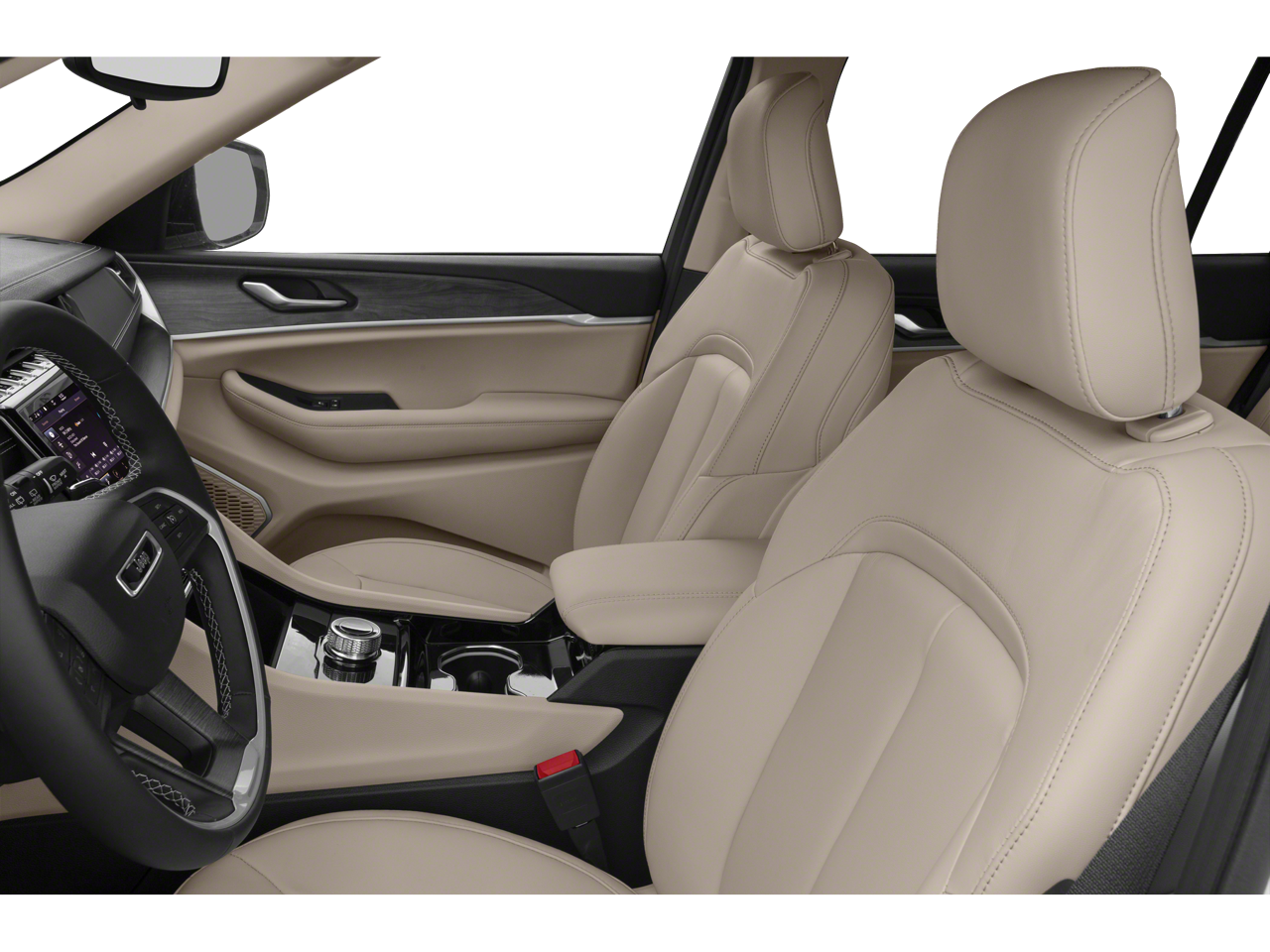 Below is all the standard equipment Altitude Appearance Package, Quick Order Package 22B Altitude (115V Auxiliary Power Outlet, 3rd Row Charge-Only USB Ports, Black Headliner, Bridgestone Brand Tires, Delete Laredo Badge, Gloss Black Exterior Accents, Heated Front Seats, Heated Steering Wheel, Leather Trimmed Bucket Seats, Leather Wrapped Steering Wheel, Molded In Color Black/Gloss Black Roof Rails, Power Liftgate, Rain Sensitive Windshield Wipers, Remote Start System, Selectable Tire Fill Alert, Wheels: 20 x 8.5 Gloss Black Painted Aluminum, and Wireless Charging Pad), 3.45 Rear Axle Ratio, 3rd row seats: split-bench, 4-Wheel Disc Brakes, 6 Speakers, ABS brakes, Air Conditioning, Alloy wheels, AM/FM radio, Anti-whiplash front head restraints, Apple CarPlay/Android Auto, Automatic temperature control, Brake assist, Bumpers: body-color, Cloth Seats, Compass, Delay-off headlights, Driver door bin, Driver vanity mirror, Dual front impact airbags, Dual front side impact airbags, Electronic Stability Control, Emergency communication system, Four wheel independent suspension, Front anti-roll bar, Front Bucket Seats, Front Center Armrest w/Storage, Front dual zone A/C, Front reading lights, Fully automatic headlights, Heated door mirrors, Illuminated entry, Knee airbag, Low tire pressure warning, Manual Fold Seatbacks, Normal Duty Suspension, Occupant sensing airbag, Outside temperature display, Overhead airbag, Overhead console, Panic alarm, ParkView Rear Back-Up Camera, Passenger door bin, Passenger vanity mirror, Power door mirrors, Power driver seat, Power steering, Power windows, Radio data system, Radio: Uconnect 5 w/8.4 Display, Rear air conditioning, Rear anti-roll bar, Rear reading lights, Rear window defroster, Rear window wiper, Reclining 3rd row seat, Remote keyless entry, Roof rack: rails only, Security system, Speed control, Speed-Sensitive Wipers, Split folding rear seat, Spoiler, Steering wheel mounted audio controls, Tachometer, Telescoping steering wheel, Tilt steering wheel, Traction control, Trip computer, Turn signal indicator mirrors, Variably intermittent wipers, and Wheels: 18 x 8.0 Fully Painted Aluminum.