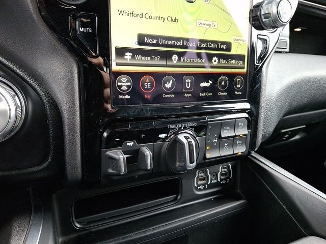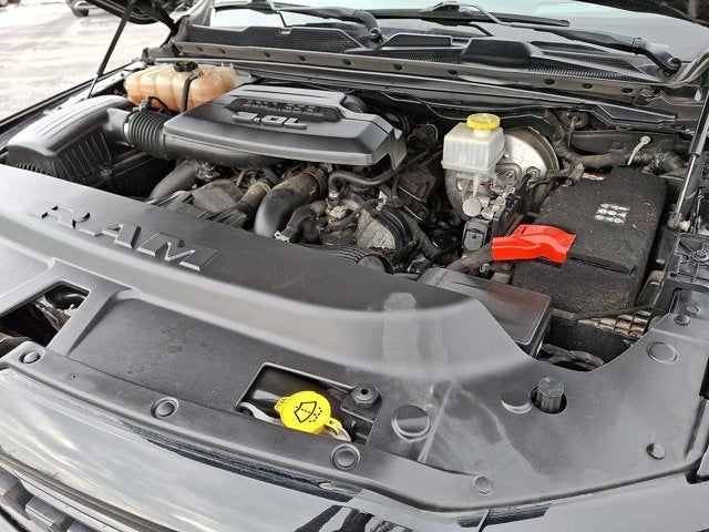 Below is all the standard equipment Advanced Safety Group (DISC) (Adaptive Cruise Control w/Stop & Go, Auto High Beam Headlamp Control, Lane Keep Assist, Parallel & Perp Park Assist w/Stop, Pedestrian Emergency Braking, and Surround View Camera System), Bed Utility Group (MOPAR 4 Adjustable Cargo Tie-Down Hooks, MOPAR Deployable Bed Step, MOPAR Spray In Bedliner, and Pick-Up Box Lighting), Cold Weather Group (Engine Block Heater and MOPAR Winter Front Grille Cover), Laramie Level 2 Equipment Group (DISC) (1-Yr SiriusXM Guardian Trial, 4G LTE Wi-Fi Hot Spot, 5-Year SiriusXM Traffic Service, 5-Year SiriusXM Travel Link Service, 8.4 Touchscreen Display, Apple CarPlay, Auto Dimming Exterior Passenger Mirror, Blind Spot & Cross Path Detection, Disassociated Touchscreen Display, Foam Bottle Insert (Door Trim Panel), For Details, Visit DriveUconnect.com, For More Info, Call 800-643-2112, Google Android Auto, GPS Antenna Input, GPS Navigation, harman/kardon 19 Speaker Premium Sound, HD Radio, Heated Second Row Seats, Integrated Center Stack Radio, Integrated Voice Command w/Bluetooth®, ParkSense Front/Rear Park Assist w/Stop, Radio: Uconnect 4C Nav w/8.4 Display, Rain Sensitive Windshield Wipers, Rear 60/40 Folding Split Recline Seat, Rear Underseat Compartment Storage, Remote Tailgate Release, SiriusXM Radio Service, SiriusXM Satellite Radio, SiriusXM Traffic Plus, SiriusXM Travel Link, Tailgate Ajar Warning Lamp, and USB Host Flip), Night Edition (#1 Seat Foam Cushion, 3 Rear Seat Head Restraints, 4 Way Front Headrests, Accent Color Premium Power Mirrors, Black Exterior Truck Badging, Black Headlamp Bezels, Black Interior Accents, Black Painted Exterior Mirrors Caps, Body Color Door Handles, Body Color Front Bumper, Body Color Rear Bumper w/Step Pads, Bucket Seats, Center Console Parts Module, Driver Seat Memory, Dual Exhaust w/Black Tips, Front Seat Back Map Pockets, Full Length Upgraded Floor Console, Grille Surround 3 Black Texture 2 Black, Heated Front Seats, Heated Steering Wheel, Leather Trimmed Bucket Seats, Mopar Black Tubular Side Steps, Power 4-Way Driver Lumbar Adjust, Power 4-Way Passenger Lumbar Adjust, Power 8-Way Driver & Passenger Seats, Sport Performance Hood, and Ventilated Front Seats), Protection Group (Tow Hooks), Quick Order Package 28H Laramie, Technology Group (DISC) (Heads-Up Display, LED CHMSL Lamp, and Rearview Autodim Digital Display Mirror), Trailer Tow Group (DISC) (Trailer Brake Control, Trailer Light Check, Trailer Reverse Steering Control, and Trailer Tire Pressure Monitoring System), Dome Dual LED Reading Lamp, Dual-Pane Panoramic Sunroof, LED Dome/Reading Lamp, 10 Speakers, 12 Touchscreen Display, 4-Corner Air Suspension, 4-Wheel Disc Brakes, 48V Belt Starter Generator, Air Suspension Decal, AM/FM radio: SiriusXM, Anti-Spin Differential Rear Axle, Apple CarPlay/Android Auto, Auto-dimming door mirrors, Auto-dimming Rear-View mi