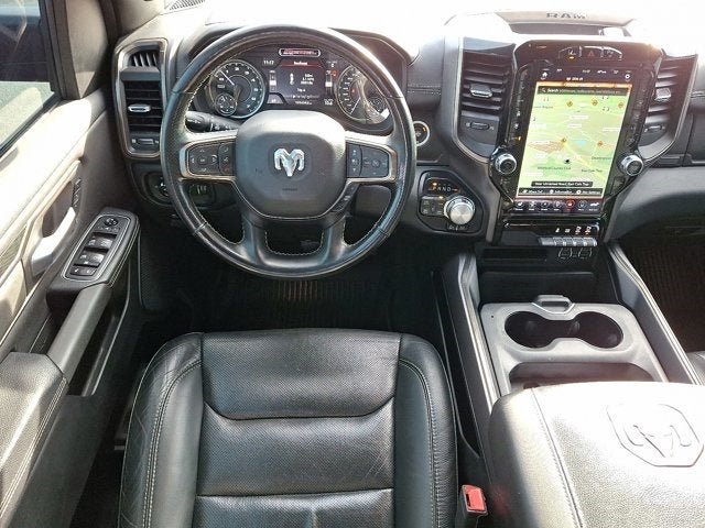 Below is all the standard equipment Advanced Safety Group (Adaptive Cruise Control w/Stop & Go, Auto High Beam Headlamp Control, Lane Keep Assist, Parallel & Perp Park Assist w/Stop, Pedestrian Emergency Braking, and Surround View Camera System), Bed Utility Group (MOPAR 4 Adjustable Cargo Tie-Down Hooks, MOPAR Deployable Bed Step, and Pick-Up Box Lighting), Comfort/Convenience Group (Driver Seat Memory, Exterior Mirrors w/Memory, Heated Second Row Seats, Power 4-Way Driver Lumbar Adjust, Power 4-Way Passenger Lumbar Adjust, Power 8-Way Driver & Passenger Seats, Remote Tailgate Release, and Wireless Charging Pad), Night Edition (Black Front Bumper w/Black Plate, Grille Moustache Black Outline Texture 3, RAM Grille Badge - Black, and Wheels: 18 x 8.0 Gloss Black), Quick Order Package 25W Rebel, Rebel 12A (12 Touchscreen Display, 4 Way Front Headrests, 4G LTE Wi-Fi Hot Spot, 9 Amplified Speakers w/Subwoofer, Apple CarPlay, Bucket Seats, Disassociated Touchscreen Display, For Details, Visit DriveUconnect.com, For More Info, Call 800-643-2112, Front Seat Back Map Pockets, Full Length Upgraded Floor Console, Google Android Auto, GPS Antenna Input, GPS Navigation, HD Radio, Heated Front Seats, Heated Steering Wheel, Integrated Center Stack Radio, Integrated Voice Command w/Bluetooth®, LED Footwell Lighting, Lux Leather Trimmed Bucket Seats, Radio: Uconnect 12 w/Navigation, Rear 60/40 Folding Seat, SiriusXM Radio Service, SiriusXM Satellite Radio, SiriusXM Traffic Plus, SiriusXM Travel Link, SiriusXM w/360L, and USB Host Flip), Rebel Level 2 Equipment Group (115V Auxiliary Rear Power Outlet, Air Conditioning ATC w/Dual Zone Control, Auto-Dimming Exterior Driver Mirror, Black Premium Power Mirrors, Body Color Door Handles, Exterior Mirrors Courtesy Lamps, Exterior Mirrors w/Supplemental Signals, Foam Bottle Insert (Door Trim Panel), Media Hub w/2 Charge Only USBs, ParkSense Front/Rear Park Assist w/Stop, Power Adjustable Pedals, Power-Folding Mirrors, Radio: Uconnect 4 w/8.4 Display, Rain Sensitive Windshield Wipers, Rear Dome w/On/Off Switch Lamp, Rear Underseat Compartment Storage, Rear Window Defroster, Remote Proximity Keyless Entry, Security Alarm, Sun Visors w/Illuminated Vanity Mirrors, and Universal Garage Door Opener), Technology Group (Heads-Up Display, LED CHMSL Lamp, and Rearview Autodim Digital Display Mirror), 3.92 Rear Axle Ratio, 4-Wheel Disc Brakes, 48V Belt Starter Generator, 6 Speakers, ABS brakes, Air Conditioning, Alloy wheels, AM/FM radio: SiriusXM, Auto-dimming Rear-View mirror, Black Exterior Mirrors, Blind Spot & Cross Path Detection, Brake assist, Cloth/Vinyl Low Back Bucket Seats, Compass, Delay-off headlights, Driver door bin, Dual front impact airbags, Dual front side impact airbags, Electric Shift-On-Demand Transfer Case, Electronic Stability Control, Front anti-roll bar, Front Bucket Seats, Front Center Armrest w/Storage