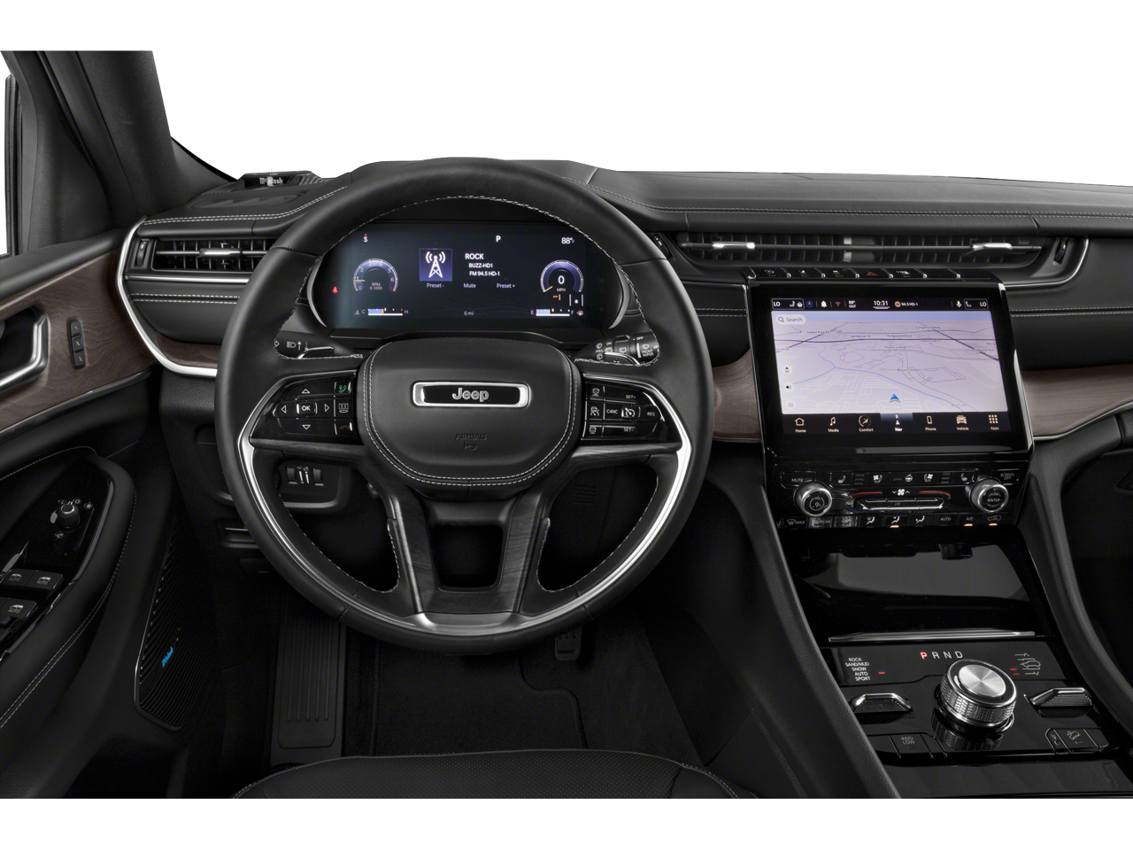 Below is all the standard equipment MOPAR Finishing Package (MOPAR Front Splash Guards, MOPAR Paint Protection Film, and MOPAR Rear Splash Guards w/Jeep Logo), Quick Order Package 22N, 10.1 Touchscreen Display, 19 Speakers High Performance Audio, 4G LTE Wi-Fi Hot Spot, 950 Watt Amplifier, Active Noise Control System, All Radio Equipped Vehicles, Apple CarPlay, Connected Travel & Traffic Services, Connectivity - US/Canada, Disassociated Touchscreen Display, For Details, Visit DriveUconnect.com, For More Info, Call 800-643-2112, Global Telematics Box Module (TBM), Google Android Auto, GPS Antenna Input, GPS Navigation, HD Radio, Integrated Center Stack Radio, Integrated Voice Command w/Bluetooth®, Radio: Uconnect 5 Nav w/10.1 Display, SiriusXM Radio Service, SiriusXM Satellite Radio, SiriusXM w/360L, USB Host Flip, Wheels: 20 x 8.5 Machined Face Aluminum, 10 Speakers, 2nd Row 60/40 Bench w/Manual Tip/Slide, 2nd Row Seat Center Armrest/Cupholders, 3 Rear Seat Head Restraints, 3.45 Rear Axle Ratio, 3rd row seats: split-bench, 4-Wheel Disc Brakes, 7-Passenger Seating, ABS brakes, Adaptive suspension, Air Conditioning, Alloy wheels, AM/FM radio: SiriusXM with 360L, Anti-whiplash front head restraints, Audio memory, Auto High-beam Headlights, Auto-dimming door mirrors, Auto-dimming Rear-View mirror, Auto-leveling suspension, Automatic temperature control, Brake assist, Bumpers: body-color, Center Rear 3-Point Seat Belt, Compass, Delay-off headlights, Driver door bin, Driver vanity mirror, Dual front impact airbags, Dual front side impact airbags, Electronic Stability Control, Emergency communication system, Four wheel independent suspension, Front anti-roll bar, Front Bucket Seats, Front Center Armrest w/Storage, Front dual zone A/C, Front fog lights, Front reading lights, Fully automatic headlights, Garage door transmitter, Heated door mirrors, Heated front seats, Heated rear seats, Heated steering wheel, Illuminated entry, Knee airbag, Leather steering wheel, Low tire pressure warning, Memory seat, Nappa Leather Seats, Navigation System, Normal Duty Suspension, Occupant sensing airbag, Outside temperature display, Overhead airbag, Overhead console, Panic alarm, Passenger door bin, Passenger vanity mirror, Power door mirrors, Power driver seat, Power Fold Seatbacks, Power Liftgate, Power moonroof, Power passenger seat, Power steering, Power windows, Radio data system, Radio: Uconnect 5 Nav w/8.4 Display, Rain sensing wipers, Rear air conditioning, Rear anti-roll bar, Rear reading lights, Rear window defroster, Rear window wiper, Reclining 3rd row seat, Remote keyless entry, Security system, Speed control, Speed-Sensitive Wipers, Split folding rear seat, Spoiler, Steering wheel memory, Steering wheel mounted audio controls, Tachometer, Telescoping steering wheel, Tilt steering wheel, Traction control, Trip computer, Turn signal indicator mirro