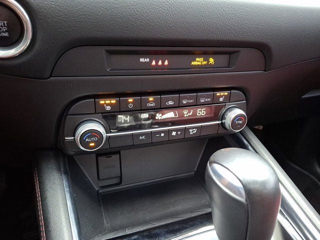 Below is all the standard equipment Navigation System, 4-Wheel Disc Brakes, 4.624 Axle Ratio, 6 Speakers, ABS brakes, Air Conditioning, Alloy wheels, AM/FM radio, AppLink/Apple CarPlay and Android Auto, Auto High-beam Headlights, Auto-dimming Rear-View mirror, Automatic temperature control, Bose Audio Credit, Brake assist, Bumpers: body-color, Delay-off headlights, Driver door bin, Driver vanity mirror, Dual front impact airbags, Dual front side impact airbags, E911 Automatic Emergency Notification, Electronic Stability Control, Emergency communication system: MAZDA CONNECT, Exterior Parking Camera Rear, Four wheel independent suspension, Front anti-roll bar, Front Bucket Seats, Front Center Armrest w/Storage, Front dual zone A/C, Front reading lights, Fully automatic headlights, Garage door transmitter: HomeLink, Heated Front Bucket Seats, Heated front seats, Illuminated entry, Infotainment System Voice Command, Leather Seat Trim, Leather Shift Knob, Low tire pressure warning, Memory seat, Multifunction Commander Control, Occupant sensing airbag, Outside temperature display, Overhead airbag, Overhead console, Pandora, Panic alarm, Passenger door bin, Passenger vanity mirror, Power door mirrors, Power driver seat, Power moonroof, Power passenger seat, Power steering, Power windows, Radio Broadcast Data System Program Information, Radio data system, Radio: AM/FM/HD Audio System, Rain sensing wipers, Rear anti-roll bar, Rear reading lights, Rear seat center armrest, Rear window defroster, Rear window wiper, Remote keyless entry, SMS Text Msg Audio Delivery & Reply, Speed control, Speed-sensing steering, Split folding rear seat, Spoiler, Steering wheel mounted audio controls, Tachometer, Telescoping steering wheel, Tilt steering wheel, Traction control, Trip computer, Turn signal indicator mirrors, and Variably intermittent wipers.