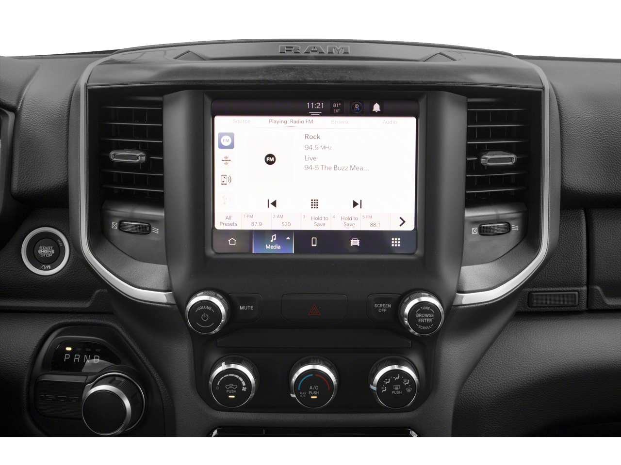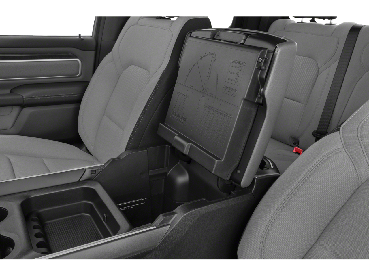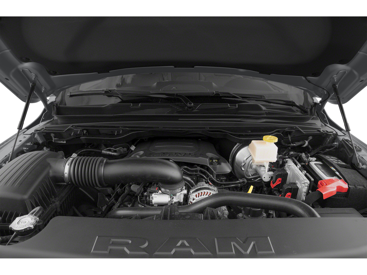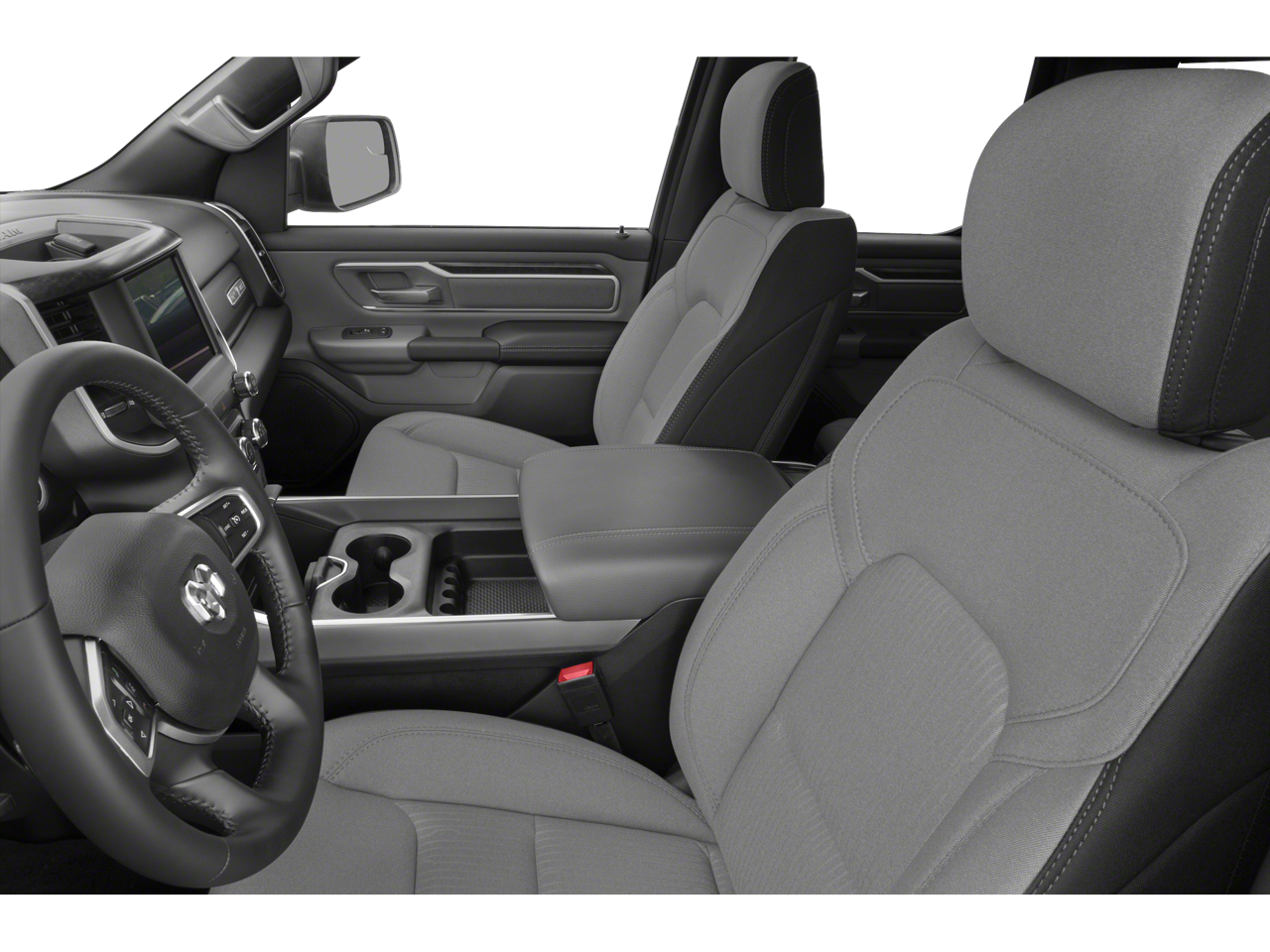 Below is all the standard equipment Bed Utility Group (MOPAR 4 Adjustable Cargo Tie-Down Hooks, MOPAR Deployable Bed Step, MOPAR Spray In Bedliner, and Pick-Up Box Lighting), Big Horn Level B Equipment Group (DISC) (115V Auxiliary Power Outlet, 115V Auxiliary Rear Power Outlet, 400W Inverter, 4G LTE Wi-Fi Hot Spot, 8.4 Touchscreen Display, Air Conditioning ATC w/Dual Zone Control, Apple CarPlay, Auto-Dimming Exterior Driver Mirror, Auto-Dimming Rear-View Mirror, Black Premium Power Mirrors (GUL), Bluetooth® Handsfree Phone & Audio, Class IV Receiver Hitch, Cluster 7.0 TFT Color Display, Connectivity - US/Canada, Exterior Mirrors Courtesy Lamps, Exterior Mirrors w/Supplemental Signals, Foam Bottle Insert (Door Trim Panel), For More Info, Call 800-643-2112, Glove Box Lamp, Google Android Auto, Heated Front Seats, Heated Steering Wheel, Integrated Center Stack Radio, Media Hub w/2 Charge Only USBs, ParkSense Front/Rear Park Assist w/Stop, Power 2-Way Driver Lumbar Adjust, Power 8-Way Driver Seat, Power Adjustable Pedals, Radio: Uconnect 5 W w/8.4 Display, Rear Dome w/On/Off Switch Lamp, Rear Power Sliding Window, Rear Window Defroster, Remote Start System, Security Alarm, SiriusXM Radio Service, SiriusXM Satellite Radio, Sun Visors w/Illuminated Vanity Mirrors, Universal Garage Door Opener, and USB Host Flip), Night Edition (3 Rear Seat Head Restraints, 4 Way Front Headrests, Accent Color Premium Power Mirrors, Anti-Spin Differential Rear Axle, Black Exterior Truck Badging, Black Headlamp Bezels, Black Interior Accents, Black Painted Exterior Mirrors Caps, Body Color Front Bumper, Body Color Rear Bumper w/Step Pads, Bucket Seats, Delete LED Lamp - Floor Console Bin, Deluxe Cloth Bucket Seats, Dual Exhaust w/Black Tips, Front Seat Back Map Pockets, Full Length Floor Console, Grille Surround 1 Black Texture 2 Black, Manual Adjust 4-Way Front Passenger Seat, Rear 60/40 Folding Seat, and Wheels: 20 x 9.0 Premium Paint/Polished), Quick Order Package 23Z Big Horn (Big Horn Badge), 4-Wheel Disc Brakes, 48V Belt Starter Generator, 6 Speakers, ABS brakes, Air Conditioning, Alloy wheels, AM/FM radio, Black Exterior Mirrors, Brake assist, Bumpers: chrome, Cloth Bench Seat, Compass, Convex Wide-Angle Mirror Insert, Delay-off headlights, Driver door bin, Dual front impact airbags, Dual front side impact airbags, Electronic Stability Control, Emergency communication system: SiriusXM Guardian, Front anti-roll bar, Front Center Armrest w/Storage, Front fog lights, Front License Plate Bracket, Front reading lights, Front wheel independent suspension, Fully automatic headlights, Global Telematics Box Module (TBM), GPS Antenna Input, Heated door mirrors, Illuminated entry, Integrated Voice Command w/Bluetooth®, Leather steering wheel, Low tire pressure warning, Occupant sensing airbag, Outside temperature display, Overhead airbag, Overhead console, Panic alarm, ParkView Rear Back-Up Camera,