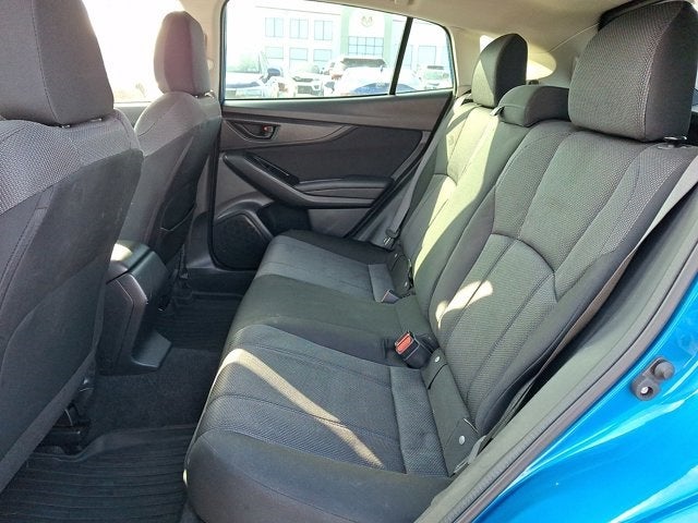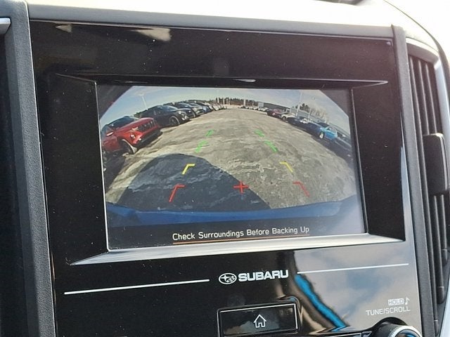Below is all the standard equipment 4 Speakers, 4-Wheel Disc Brakes, ABS brakes, Air Conditioning, AM/FM radio, Anti-whiplash front head restraints, Brake assist, Bumpers: body-color, Cloth Upholstery, Driver door bin, Driver vanity mirror, Dual front impact airbags, Dual front side impact airbags, Electronic Stability Control, Exterior Parking Camera Rear, Four wheel independent suspension, Front anti-roll bar, Front Bucket Seats, Front Center Armrest, Front reading lights, Illuminated entry, Knee airbag, Low tire pressure warning, Occupant sensing airbag, Outside temperature display, Overhead airbag, Overhead console, Panic alarm, Passenger door bin, Passenger vanity mirror, Power door mirrors, Power steering, Power windows, Radio data system, Radio: Subaru STARLINK 6.5 Multimedia System, Rear window defroster, Rear window wiper, Remote keyless entry, Security system, Speed control, Speed-sensing steering, Split folding rear seat, Spoiler, STARLINK/Apple CarPlay/Android Auto, Steering wheel mounted audio controls, Tachometer, Telescoping steering wheel, Tilt steering wheel, Traction control, Trip computer, Variably intermittent wipers, and Wheels: 16 x 6.5 Black Finish J Steel.