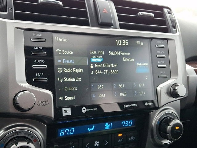 - Radio: Premium Audio w/JBL -inc: 8.0" touch-screen display, HD radio, 15 speakers including subwoofer and amplifier, Android Auto, Apple CarPlay and Amazon Alexa compatible, USB media port, 4 USB charge ports, Dynamic Navigation w/up to a 3-year trial, dynamic POI search, dynamic voice recognition, hands-free phone capability and music streaming via Bluetooth® wireless technology, SiriusXM w/3-month Platinum Plan trial, Connected Services - Safety Connect w/1-year trial, Service Connect w/10-year trial, Remote Connect w/1-year trial, Wi-Fi Connect w/up to 2 GB within 3-month trial and Destination Assist w/1-year trial, See toyota.com/audio-multimedia for details