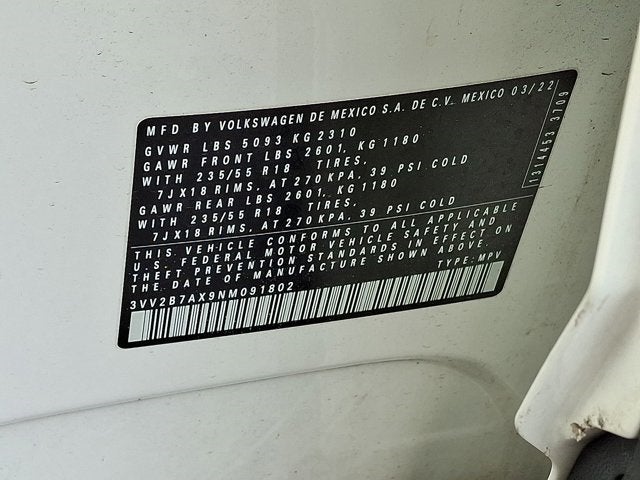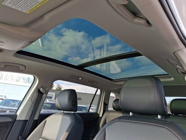 Below is all the standard equipment Panoramic Sunroof Package, Volkswagen Certified Pre-Owned Certified, AWD, 3.33 Axle Ratio, 4-Wheel Disc Brakes, 4-Wheel Independent Suspension, 6 Speakers, ABS brakes, Air Conditioning, Alloy wheels, AM/FM radio: SiriusXM with 360L, Auto-dimming Rear-View mirror, Automatic temperature control, Brake assist, Bumpers: body-color, Compass, Delay-off headlights, Driver door bin, Driver vanity mirror, Dual front impact airbags, Dual front side impact airbags, Electronic Stability Control, Emergency communication system: Car-Net, Exterior Parking Camera Rear, Four wheel independent suspension, Front anti-roll bar, Front Bucket Seats, Front Center Armrest, Front dual zone A/C, Front reading lights, Fully automatic headlights, Heated door mirrors, Heated Front Comfort Seats, Heated front seats, Illuminated entry, Leather Shift Knob, Low tire pressure warning, Occupant sensing airbag, Outside temperature display, Overhead airbag, Overhead console, Panic alarm, Passenger door bin, Passenger vanity mirror, Perforated V-Tex Leatherette Seating Surfaces, Power door mirrors, Power driver seat, Power Liftgate, Power steering, Power windows, Radio data system, Radio: MIB3 Composition Media AM/FM/HD, Rain sensing wipers, Rear anti-roll bar, Rear reading lights, Rear seat center armrest, Rear window defroster, Rear window wiper, Remote keyless entry, Roof rack: rails only, Security system, Speed control, Speed-sensing steering, Split folding rear seat, Spoiler, Steering wheel mounted audio controls, Tachometer, Telescoping steering wheel, Tilt steering wheel, Traction control, Trip computer, Turn signal indicator mirrors, Variably intermittent wipers, and Wheels: 18 Dark Graphite 10-Spoke Alloy.