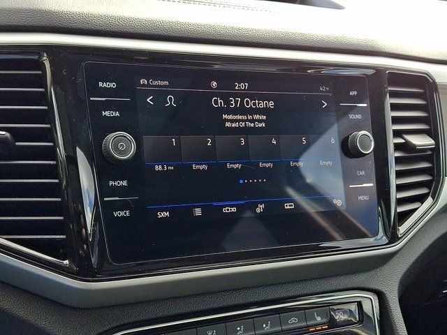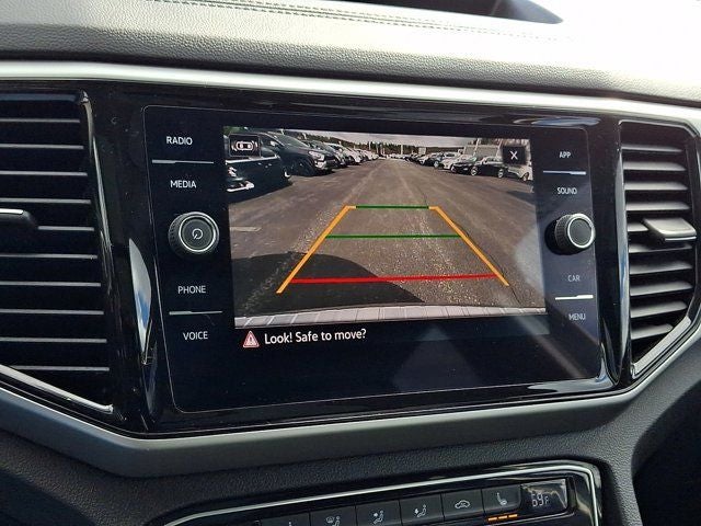 Below is all the standard equipment Panoramic Sunroof Package (Power Tilting & Sliding Panoramic Sunroof), Trailer Hitch Extras, Volkswagen Certified Pre-Owned Certified, 2nd-Row Dual Captain's Chairs, 3.60 Axle Ratio, 3rd row seats: split-bench, 4-Wheel Disc Brakes, 6 Speakers, ABS brakes, Air Conditioning, Alloy wheels, AM/FM radio: SiriusXM with 360L, Auto-Dimming Rear-View Mirror, Auto-dimming Rear-View mirror, Automatic temperature control, Brake assist, Bumpers: body-color, Compass, Delay-off headlights, Driver door bin, Driver vanity mirror, Dual front impact airbags, Dual front side impact airbags, Electronic Stability Control, Emergency communication system: VW Car-Net Safe & Secure 5-year, Exterior Parking Camera Rear, Four wheel independent suspension, Front anti-roll bar, Front Bucket Seats, Front Center Armrest, Front dual zone A/C, Front fog lights, Front reading lights, Fully automatic headlights, Heated Comfort Front Bucket Seats, Heated door mirrors, Heated front seats, Heavy Duty Trunk Liner w/VW CarGo Blocks, Illuminated entry, Leather Shift Knob, Low tire pressure warning, Occupant sensing airbag, Outside temperature display, Overhead airbag, Overhead console, Panic alarm, Passenger door bin, Passenger vanity mirror, Perforated V-Tex Leatherette Seating Surfaces, Power door mirrors, Power driver seat, Power Liftgate, Power steering, Power windows, Radio data system, Radio: MIB3 Composition Media w/8 Touchscreen, Rain sensing wipers, Rear air conditioning, Rear anti-roll bar, Rear reading lights, Rear seat center armrest, Rear window defroster, Rear window wiper, Remote keyless entry, Roadside Assistance Kit, Rubber Mats Kit - Captain's Chairs, Security system, Speed control, Speed-sensing steering, Split folding rear seat, Spoiler, Standard Suspension, Steering wheel mounted audio controls, Tachometer, Telescoping steering wheel, Tilt steering wheel, Traction control, Trip computer, Turn signal indicator mirrors, Variably intermittent wipers, VW Care, and Wheels: 20 x 8J 5-Spoke Silver Painted Alloy.