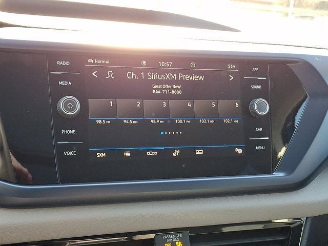 Below is all the standard equipment Panoramic Sunroof Package, Volkswagen Certified Pre-Owned Certified, 4-Wheel Disc Brakes, 5.20 Axle Ratio, 6 Speakers, ABS brakes, Active Blind Spot Monitor, Air Conditioning, Alloy wheels, AM/FM radio: SiriusXM with 360L, Auto High-beam Headlights, Auto-Dimming Rearview Mirror (SRV), Brake assist, Bumpers: body-color, Carpeted MojoMats (Set of 4), Chrome Bumperdillo Protection Plate for Rear Bumper, CloudTex & Cloth Seating Surfaces, Compass, Delay-off headlights, Driver door bin, Driver vanity mirror, Dual front impact airbags, Dual front side impact airbags, Electronic Stability Control, Emergency communication system: VW Car-Net Safe & Secure 5-year, Exterior Parking Camera Rear, First Aid Kit, Four wheel independent suspension, Front anti-roll bar, Front Bucket Seats, Front Center Armrest, Front reading lights, Front Strut Rear Multi-Link Suspension, Fully automatic headlights, Heated door mirrors, Heated Front Comfort Seats, Heated front seats, Heated steering wheel, Illuminated entry, Leather Shift Knob, Low tire pressure warning, Occupant sensing airbag, Outside temperature display, Overhead airbag, Overhead console, Panic alarm, Passenger door bin, Passenger vanity mirror, Power door mirrors, Power driver seat, Power steering, Power windows, Radio data system, Radio: MIB3 Composition Media AM/FM/HD, Rain sensing wipers, Rear anti-roll bar, Rear seat center armrest, Rear window defroster, Rear window wiper, Remote keyless entry, Security system, Speed control, Speed-sensing steering, Split folding rear seat, Spoiler, Steering wheel mounted audio controls, Tachometer, Telescoping steering wheel, Tilt steering wheel, Traction control, Trip computer, Variably intermittent wipers, and Wheels: 18 2-Tone Machined Alloy.