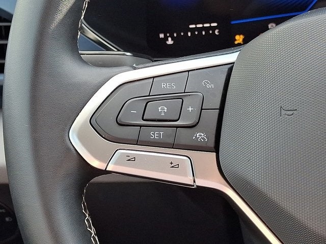 Below is all the standard equipment Black Wheel Package (Wheels: 18 Black Painted Alloy), 4-Wheel Disc Brakes, 5.20 Axle Ratio, 6 Speakers, ABS brakes, Active Blind Spot Monitor, Air Conditioning, Alloy wheels, AM/FM radio: SiriusXM with 360L, Auto High-beam Headlights, Brake assist, Bumpers: body-color, CloudTex & Cloth Seating Surfaces, Compass, Delay-off headlights, Driver door bin, Driver vanity mirror, Dual front impact airbags, Dual front side impact airbags, Electronic Stability Control, Emergency communication system: VW Car-Net Safe & Secure 5-year, Exterior Parking Camera Rear, Four wheel independent suspension, Front anti-roll bar, Front Bucket Seats, Front Center Armrest, Front reading lights, Front Strut Rear Multi-Link Suspension, Fully automatic headlights, Heated door mirrors, Heated Front Comfort Seats, Heated front seats, Heated steering wheel, Illuminated entry, Leather Shift Knob, Low tire pressure warning, Occupant sensing airbag, Outside temperature display, Overhead airbag, Overhead console, Panic alarm, Passenger door bin, Passenger vanity mirror, Power door mirrors, Power driver seat, Power steering, Power windows, Radio data system, Radio: MIB3 Composition Media AM/FM/HD, Rain sensing wipers, Rear anti-roll bar, Rear seat center armrest, Rear window defroster, Rear window wiper, Remote keyless entry, Security system, Speed control, Speed-sensing steering, Split folding rear seat, Spoiler, Steering wheel mounted audio controls, Tachometer, Telescoping steering wheel, Tilt steering wheel, Traction control, Trip computer, Variably intermittent wipers, and Wheels: 18 2-Tone Machined Alloy.
