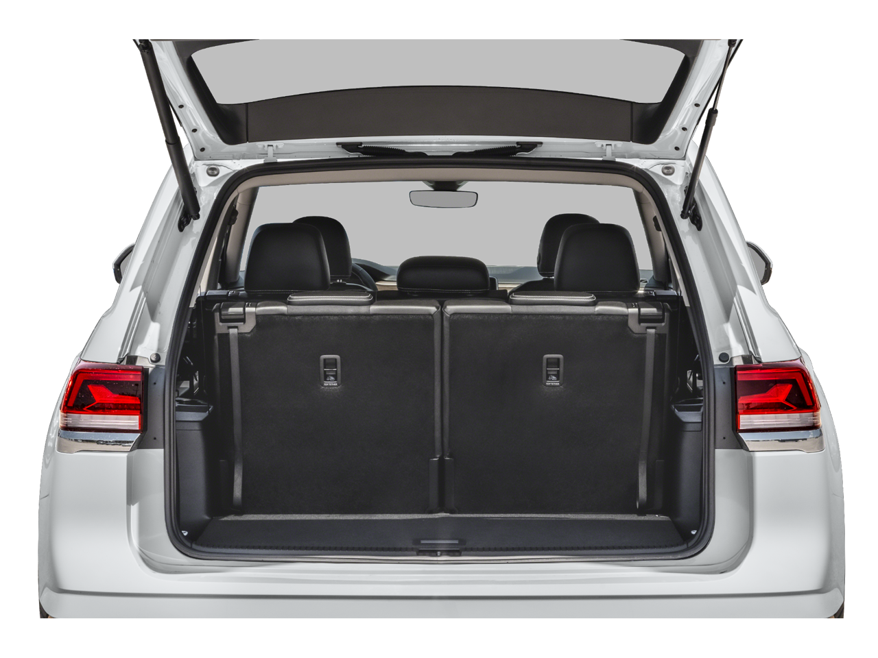 Below is all the standard equipment Black Wheel Package (Wheels: 20 Multi-Spoke Black Painted Alloy), 3.60 Axle Ratio, 3rd row seats: split-bench, 4-Wheel Disc Brakes, 6 Speakers, ABS brakes, Air Conditioning, Alloy wheels, AM/FM radio: SiriusXM with 360L, Auto-dimming Rear-View mirror, Automatic temperature control, Brake assist, Bumpers: body-color, Compass, Delay-off headlights, Driver door bin, Driver vanity mirror, Dual front impact airbags, Dual front side impact airbags, Electronic Stability Control, Emergency communication system: VW Car-Net Safe & Secure 5-year, Exterior Parking Camera Rear, Four wheel independent suspension, Front anti-roll bar, Front Bucket Seats, Front Center Armrest, Front dual zone A/C, Front fog lights, Front reading lights, Fully automatic headlights, Heated door mirrors, Heated front seats, Heated steering wheel, Heated/Actively Ventilated Front Bucket Seats, Illuminated entry, Low tire pressure warning, Occupant sensing airbag, Outside temperature display, Overhead airbag, Overhead console, Panic alarm, Passenger door bin, Passenger vanity mirror, Perforated V-Tex Leatherette Seating Surfaces, Power door mirrors, Power driver seat, Power Liftgate, Power steering, Power windows, Radio data system, Radio: MIB3 Composition Media, Rain sensing wipers, Rear air conditioning, Rear anti-roll bar, Rear reading lights, Rear seat center armrest, Rear window defroster, Rear window wiper, Remote keyless entry, Security system, Speed control, Speed-sensing steering, Split folding rear seat, Spoiler, Standard Suspension, Steering wheel mounted audio controls, Tachometer, Telescoping steering wheel, Tilt steering wheel, Traction control, Trip computer, Turn signal indicator mirrors, Variably intermittent wipers, Ventilated front seats, and Wheels: 20 2-Tone Machined Alloy.