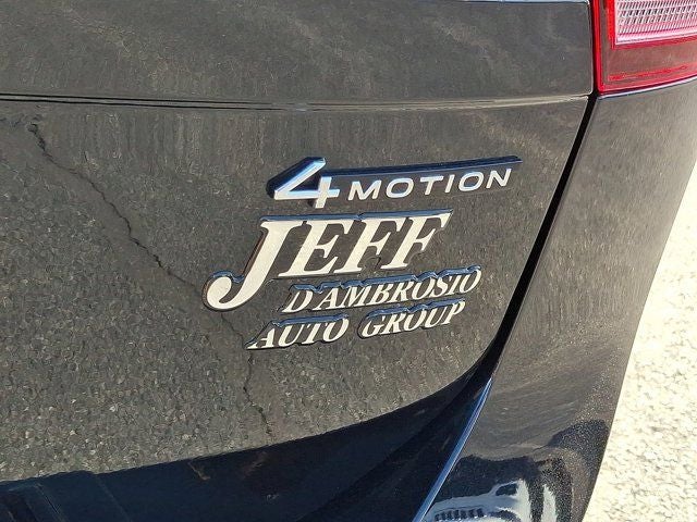 Below is all the standard equipment Panoramic Sunroof Package, Volkswagen Certified Pre-Owned Certified, AWD, 2-Row Rubber Monster Mats Kit (Set of 4), 3.33 Axle Ratio, 4-Wheel Disc Brakes, 4-Wheel Independent Suspension, 6 Speakers, ABS brakes, Air Conditioning, Alloy wheels, AM/FM radio: SiriusXM with 360L, Auto-dimming Rear-View mirror, Automatic temperature control, Brake assist, Bumperdillo Rear Bumper Protection Plate in Black, Bumpers: body-color, Compass, Delay-off headlights, Driver door bin, Driver vanity mirror, Dual front impact airbags, Dual front side impact airbags, Electronic Stability Control, Emergency communication system: VW Car-Net Safe & Secure 5-year, Exterior Parking Camera Rear, First Aid Kit, Four wheel independent suspension, Front anti-roll bar, Front Bucket Seats, Front Center Armrest, Front dual zone A/C, Front reading lights, Fully automatic headlights, Heated door mirrors, Heated Front Seats, Heated front seats, Heavy Duty Trunk Liner w/VW CarGo Blocks, Illuminated entry, Leather Shift Knob, Low tire pressure warning, Occupant sensing airbag, Outside temperature display, Overhead airbag, Overhead console, Panic alarm, Passenger door bin, Passenger vanity mirror, Perforated V-Tex Leatherette Seating Surfaces, Power door mirrors, Power driver seat, Power Liftgate, Power steering, Power windows, Radio data system, Radio: MIB3 Composition Media AM/FM/HD, Rain sensing wipers, Rear anti-roll bar, Rear reading lights, Rear seat center armrest, Rear window defroster, Rear window wiper, Remote keyless entry, Roadside Assistance Kit, Security system, Speed control, Speed-sensing steering, Split folding rear seat, Spoiler, Steering wheel mounted audio controls, Tachometer, Telescoping steering wheel, Tilt steering wheel, Traction control, Trip computer, Turn signal indicator mirrors, Variably intermittent wipers, and Wheels: 18 Dark Graphite Painted 10-Spoke Alloy.