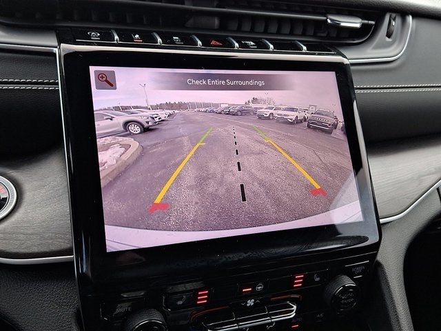 Below is all the standard equipment MOPAR Finishing Package (MOPAR Front Splash Guards, MOPAR Paint Protection Film, and MOPAR Rear Splash Guards with Jeep Logo), Quick Order Package 22E, Trailer Tow Package (220 Amp Alternator, 7 and 4-Pin Wiring Harness, Automatic Headlamp Levelling System, Class IV Receiver Hitch, Heavy-Duty Engine Cooling, Rear Load Levelling Suspension, and Trailer Hitch Zoom), 4WD, 4-Wheel Disc Brakes, 506 Watt Amplifier, 6 Speakers, 9 Amplified Speakers with Subwoofer, ABS brakes, Active Noise Control System, Air Conditioning, Alloy wheels, AM/FM radio: SiriusXM with 360L, Anti-whiplash front head restraints, Audio memory, Auto High-beam Headlights, Automatic temperature control, Brake assist, Bumpers: body-color, Capri Leatherette Seats, Compass, Delay-off headlights, Driver door bin, Driver vanity mirror, Dual front impact airbags, Dual front side impact airbags, Electronic Stability Control, Emergency communication system, Four wheel independent suspension, Front anti-roll bar, Front Bucket Seats, Front Center Armrest w/Storage, Front dual zone A/C, Front fog lights, Front License Plate Bracket, Front reading lights, Fully automatic headlights, Garage door transmitter, Heated door mirrors, Heated front seats, Heated rear seats, Heated steering wheel, Illuminated entry, Knee airbag, Low tire pressure warning, Memory seat, Model Year Tracking, Navigation System, Normal Duty Suspension, Occupant sensing airbag, Outside temperature display, Overhead airbag, Overhead console, Panic alarm, ParkView Rear Back-Up Camera, Passenger door bin, Passenger vanity mirror, Power door mirrors, Power driver seat, Power Liftgate, Power passenger seat, Power steering, Power windows, Radio data system, Radio: Uconnect 5 Nav with 10.1 Display, Rear anti-roll bar, Rear reading lights, Rear window defroster, Rear window wiper, Remote keyless entry, Security system, Speed control, Speed-Sensitive Wipers, Split folding rear seat, Spoiler, Steering wheel mounted audio controls, Tachometer, Telescoping steering wheel, Tilt steering wheel, Traction control, Trip computer, Turn signal indicator mirrors, Variably intermittent wipers, Voltmeter, Wheels: 18 x 8 Polished/Painted Aluminum, and Wheels: 20 x 8.5 Machined/Painted Aluminum.