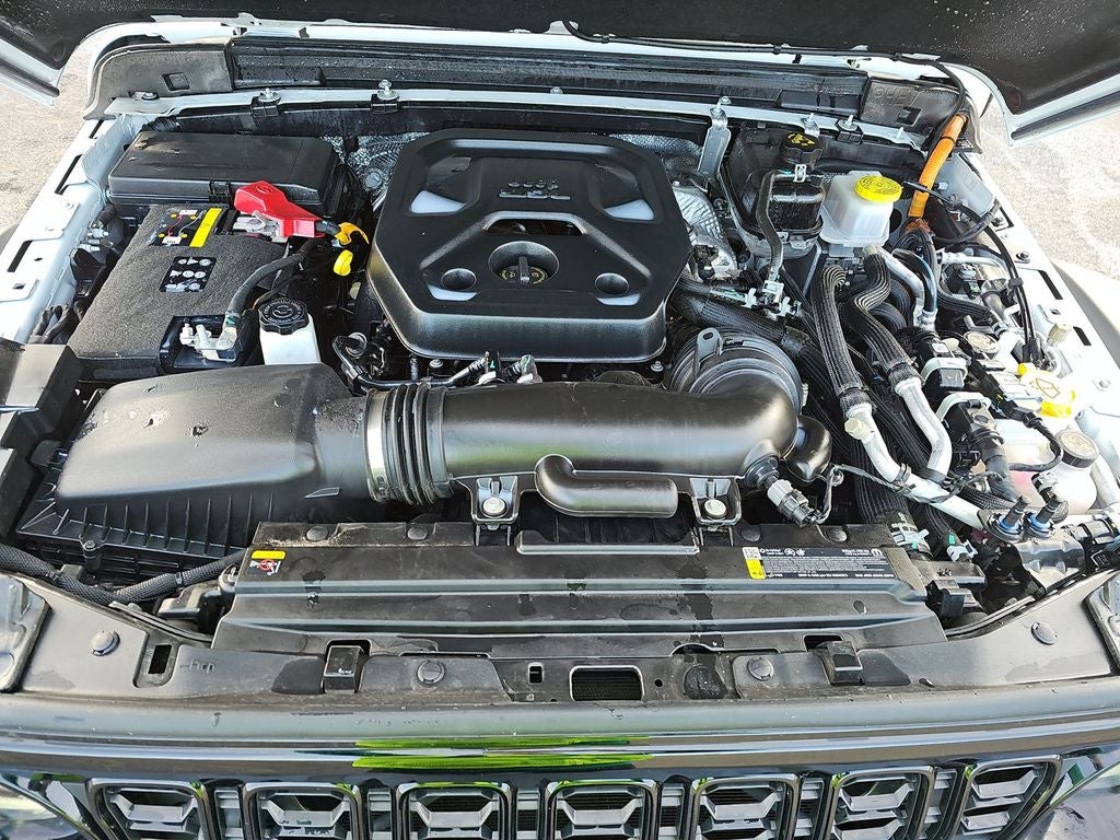 Below is all the standard equipment Convenience Group (2-Door Passive Entry, Front Door Locks, Air Conditioning w/Auto Temperature Control, Air Filtering, Emergency/Assistance Call, Heated Front Seats, Heated Steering Wheel, Remote Start System, and Universal Garage Door Opener), Quick Order Package 29W Willys 4xe (4-Wheel Drive Swing Gate Decal, 4.10 Rear Axle Ratio, 7 & 4 Pin Wiring Harness, 97 MPH Vehicle Max Speed Calibration, Auxiliary Switches, Black Grille, Class II Receiver Hitch, Conventional Differential Front Axle, E-Locker Rear Axle, Front LED Fog Lamps, LED Premium Reflector Headlamps, Molded in Color Rubicon Highline Flare, MOPAR All-Weather Floor Mats, Off-Road Plus Mode, Wheels: 17 x 7.5 Painted Black, Willy's Suspension, and Willys 4xe Hood Decal), 2.0L I4 DOHC, 4-Wheel Disc Brakes, 8 Speakers, ABS brakes, Air Conditioning, Alloy wheels, AM/FM radio: SiriusXM, Apple CarPlay/Android Auto, Black 3-Piece Hard Top, Brake assist, Cloth Low-Back Bucket Seats, Compass, Delay-off headlights, Driver door bin, Driver vanity mirror, Dual front impact airbags, Dual front side impact airbags, Electronic Stability Control, Freedom Panel Storage Bag, Front anti-roll bar, Front Bucket Seats, Front Center Armrest w/Storage, Front fog lights, Front License Plate Bracket (DISC), Front reading lights, Fully automatic headlights, Heated door mirrors, Illuminated entry, Integrated roll-over protection, Low tire pressure warning, Occupant sensing airbag, Outside temperature display, Overhead airbag, Panic alarm, ParkView Rear Back-Up Camera, Passenger door bin, Passenger vanity mirror, Power door mirrors, Power steering, Power windows, Radio data system, Radio: Uconnect 5 w/12.3 Display, Rear anti-roll bar, Rear reading lights, Rear Window Defroster, Rear Window Wiper/Washer, Remote keyless entry, Security system, Speed control, Split folding rear seat, Sport Suspension, Steering wheel mounted audio controls, Tachometer, Telescoping steering wheel, Tilt steering wheel, Traction control, Trip computer, Variably intermittent wipers, and Voltmeter.