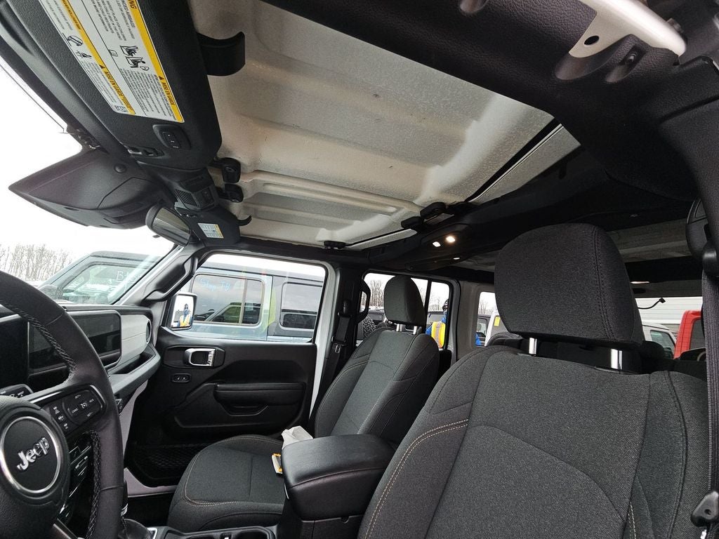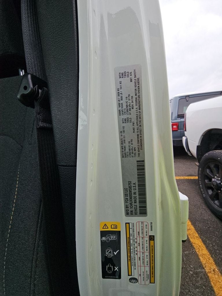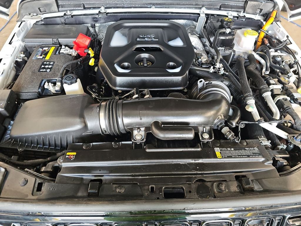 Below is all the standard equipment Convenience Group (2-Door Passive Entry, Front Door Locks, Air Conditioning w/Auto Temperature Control, Air Filtering, Emergency/Assistance Call, Heated Front Seats, Heated Steering Wheel, Remote Start System, and Universal Garage Door Opener), Quick Order Package 29W Willys 4xe (4-Wheel Drive Swing Gate Decal, 4.10 Rear Axle Ratio, 7 & 4 Pin Wiring Harness, 97 MPH Vehicle Max Speed Calibration, Auxiliary Switches, Black Grille, Class II Receiver Hitch, Conventional Differential Front Axle, E-Locker Rear Axle, Front LED Fog Lamps, LED Premium Reflector Headlamps, Molded in Color Rubicon Highline Flare, MOPAR All-Weather Floor Mats, Off-Road Plus Mode, Wheels: 17 x 7.5 Painted Black, Willy's Suspension, and Willys 4xe Hood Decal), 2.0L I4 DOHC, 4-Wheel Disc Brakes, 8 Speakers, ABS brakes, Air Conditioning, Alloy wheels, AM/FM radio: SiriusXM, Apple CarPlay/Android Auto, Black 3-Piece Hard Top, Brake assist, Cloth Low-Back Bucket Seats, Compass, Delay-off headlights, Driver door bin, Driver vanity mirror, Dual front impact airbags, Dual front side impact airbags, Electronic Stability Control, Freedom Panel Storage Bag, Front anti-roll bar, Front Bucket Seats, Front Center Armrest w/Storage, Front fog lights, Front License Plate Bracket (DISC), Front reading lights, Fully automatic headlights, Heated door mirrors, Illuminated entry, Integrated roll-over protection, Low tire pressure warning, Occupant sensing airbag, Outside temperature display, Overhead airbag, Panic alarm, ParkView Rear Back-Up Camera, Passenger door bin, Passenger vanity mirror, Power door mirrors, Power steering, Power windows, Radio data system, Radio: Uconnect 5 w/12.3 Display, Rear anti-roll bar, Rear reading lights, Rear Window Defroster, Rear Window Wiper/Washer, Remote keyless entry, Security system, Speed control, Split folding rear seat, Sport Suspension, Steering wheel mounted audio controls, Tachometer, Telescoping steering wheel, Tilt steering wheel, Traction control, Trip computer, Variably intermittent wipers, Voltmeter, and Wheels: 20 x 8 Machined/Painted Gray.