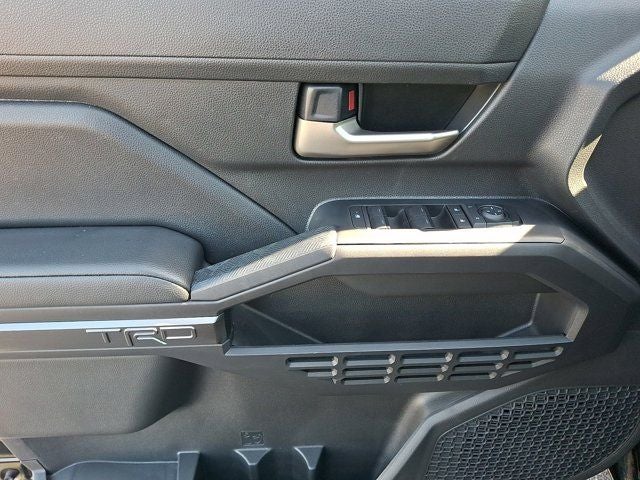 Below is all the standard equipment Towing Package (Integrated Trailer Brake Controller and Towing Hitch), TRD Off Road Premium Package (3D Multi-Terrain Monitor, 8-Way Power Driver & Passenger Seat Adjusters, Digital Rearview Mirror, Heated Front Seats, Heated Leather-Trimmed Steering Wheel, JBL Premium Audio, Low Auxiliary (30A) Switches, Power Horizontal Rear Window, Power Tilt/Slide Moonroof w/Sliding Sunshade, Pre-Wire Accommodation (Bed Power Port), Radio: 14 Toyota Audio Multimedia w/TRD Premium, Smart Key w/Digital Key Technology, and TACOMA Stamped Power Open & Close Tailgate), 4WD, 3.583 Axle Ratio, 4-Wheel Disc Brakes, 6 Speakers, ABS brakes, Air Conditioning, Alloy wheels, AM/FM radio: SiriusXM, Anti-whiplash front head restraints, Apple CarPlay/Android Auto, Auto High-beam Headlights, Auto-dimming Rear-View mirror, Automatic temperature control, Brake assist, Bumpers: body-color, Driver door bin, Driver vanity mirror, Dual front impact airbags, Dual front side impact airbags, Electronic Stability Control, Emergency communication system: Safety Connect (1-year trial), Exterior Parking Camera Rear, Fabric Seat Trim, Four wheel independent suspension, Front anti-roll bar, Front Bucket Seats, Front Center Armrest, Front fog lights, Front reading lights, Fully automatic headlights, Heated door mirrors, Illuminated entry, Knee airbag, Leather Shift Knob, Leather steering wheel, Low tire pressure warning, Occupant sensing airbag, Outside temperature display, Overhead airbag, Overhead console, Panic alarm, Passenger door bin, Passenger vanity mirror, Power door mirrors, Power steering, Power windows, Radio: 8 Toyota Audio Multimedia, Rear step bumper, Rear window defroster, Remote keyless entry, Security system, Speed control, Speed-sensing steering, Split folding rear seat, Steering wheel mounted audio controls, Tachometer, Telescoping steering wheel, Tilt steering wheel, Traction control, Trip computer, Turn signal indicator mirrors, Variably intermittent wipers, and Wheels: 17 TRD Off-Road Alloy.